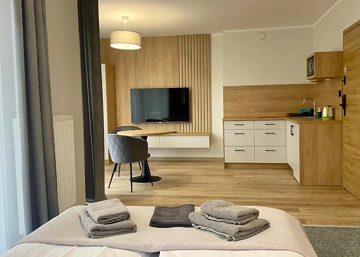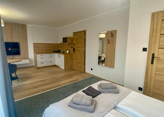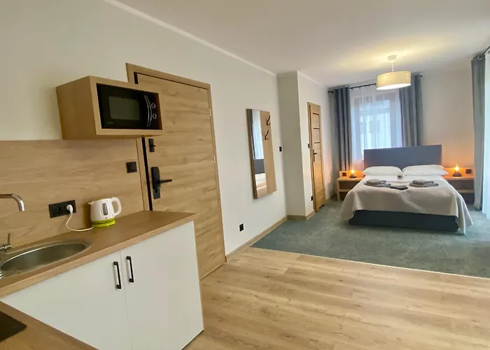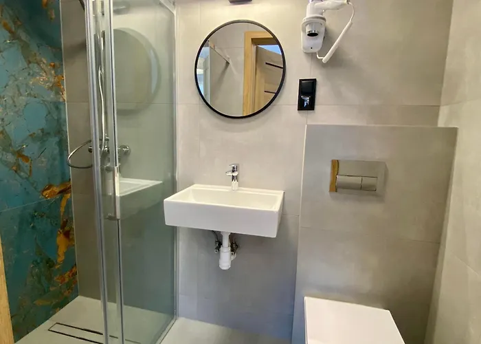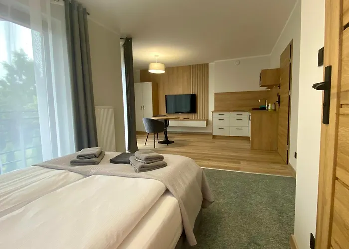 Az "Willa Octavia" Apartamenty, Pokoje felszerelt konyhasarkot biztosít hűtővel, főzőlappal és konyhai edényekkel, valamint vízforralóval. A Lech Wałęsa repülőtér 65 km-re fekszik az ingatlantól. Ha a sport csábítóan hangzik, kínálnak túrázást.